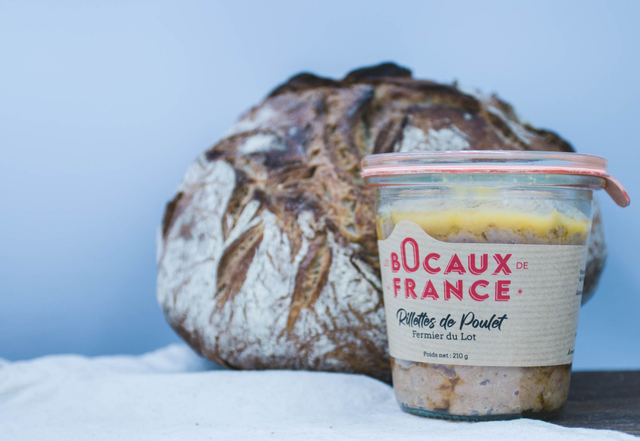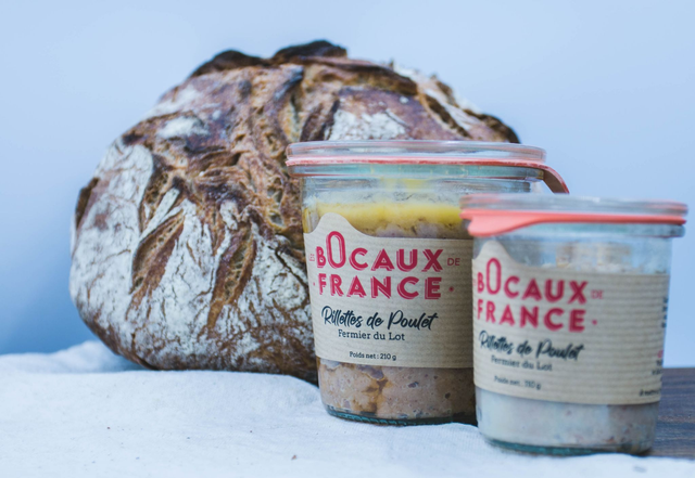 Rillettes de poulet fermier du Lot, cuisinées artisanalement avec de la graisse de canard, selon une recette traditionnelle qui allie finesse et gourmandise. La viande de poulet est cuite lentement puis effilochée afin d’obtenir une texture fondante et savoureuse, sublimée par la richesse aromatique de la graisse de canard.